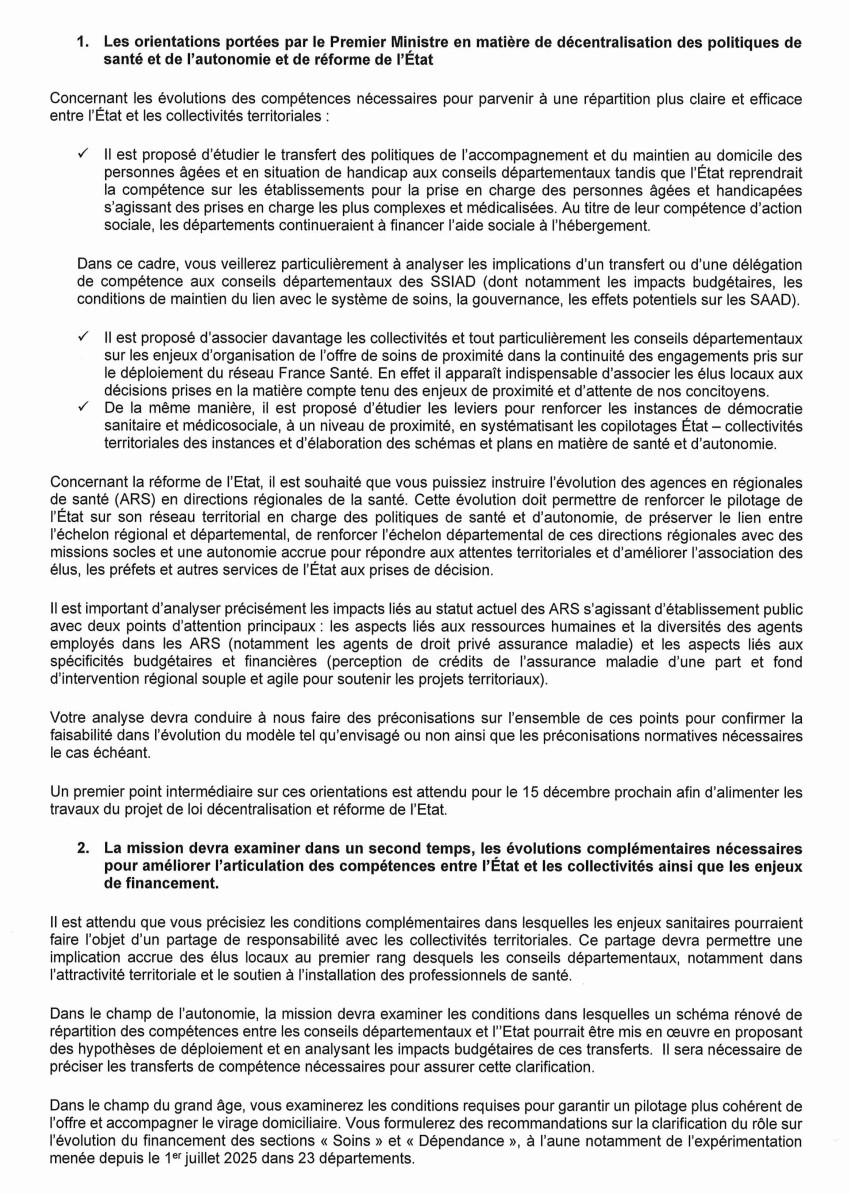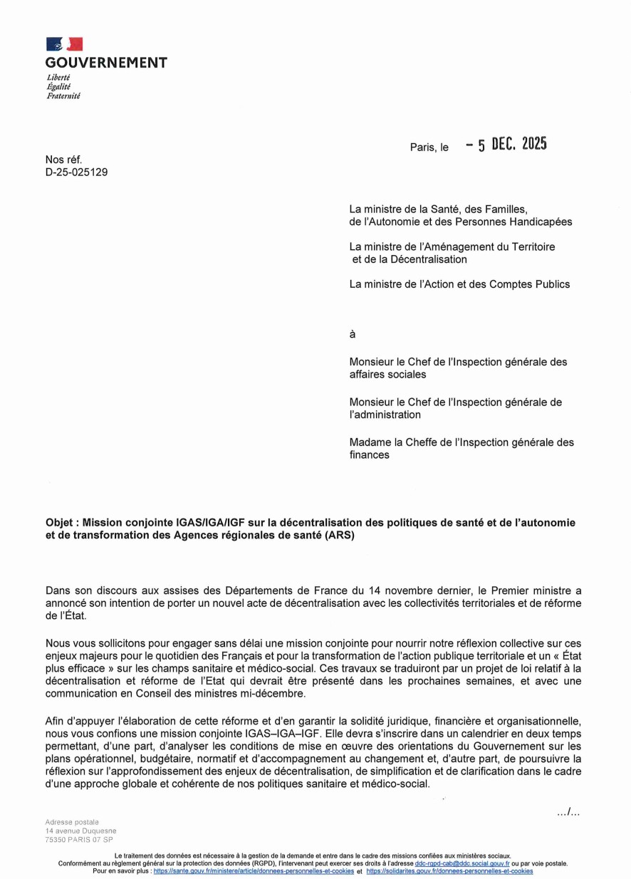 ARS – Courrier ministériel commandant le rapport IGAS-IGA-IGF