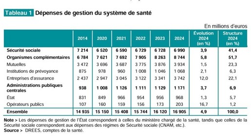 Les coûts de gestion de la Sécurité sociale en 2024 sont de 6,9 milliards d’euros, contre 8,7 milliards pour les organismes privés.