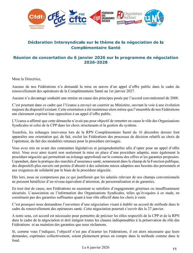 Complémentaire Santé – Déclaration intersyndicale sur le thème de la négociation de la complémentaire santé